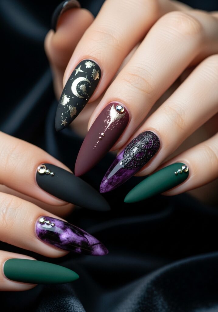 Dark Feminine Stiletto Nail Ideas